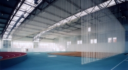 eine weiter verwendung der netze besteht in der waagerechten abspannung der hallendecken, die maschengröße der nylonnetze variiert von 30 x 30 bis 100 x 100 mm und die netze können in verschiedenen farben sowie in einer flammenhemmenden qualität angefertigt werden.