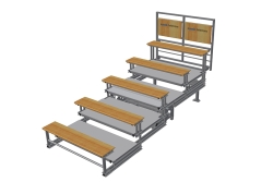 bei dieser type handelt es sich um die weiterentwicklung der 3-stufigen mobilen falttribüne mft-3t. bei geringfügig größeren abmessungen im zusammengeklappten zustand können bei dieser 5-stufigen ausführung pro element 15 zuschauer platz finden, so daß sich bei einem etwas höheren anschaffungspreis eine wesentlich bessere rentabilität ergibt.